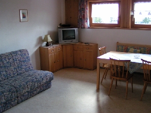 Unser Appartement ist mit einer Wohnküche, einem Schlafzimmer mit Doppelbett und Stockbett und mit Bad und WC ausgestattet. Die Ferienwohnung ist mit 2-6 Personen belegbar.